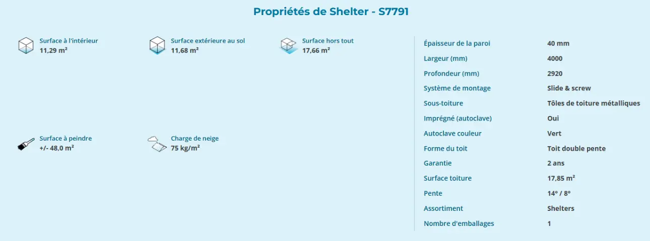 40 mm Épaisseur de la paroi 17.66 m² Surface intérieure au sol
