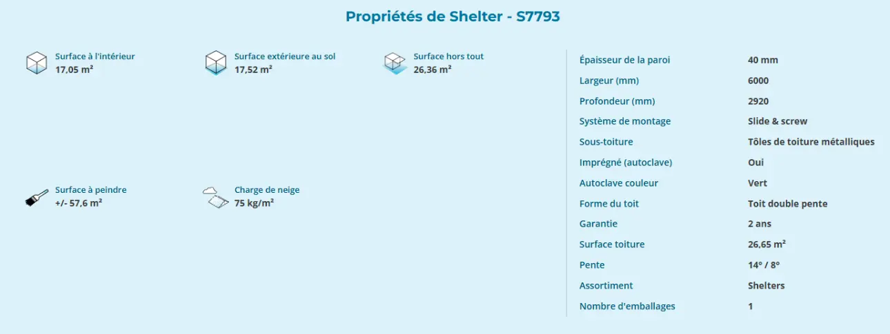 40 mm Épaisseur de la paroi 26.36 m² Surface intérieure au sol