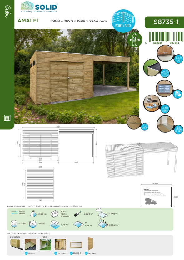 - La toiture est composée de planches de bois de 16 mm et d'EPDM. Vitrage