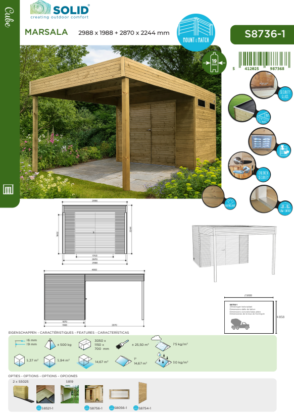 - La toiture est composée de planches de bois de 16 mm et d'EPDM. Vitrage